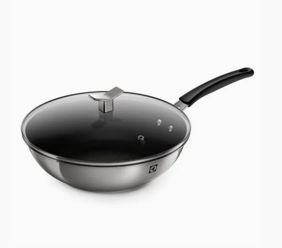 Wok Antiadherente con Tapa de Vidrio Electrolux 28 cm